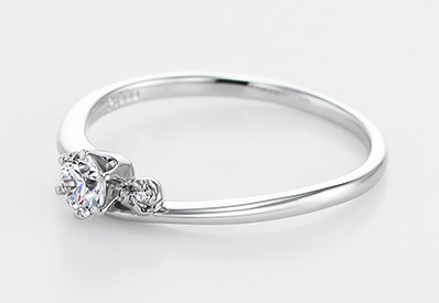 二人で織りなす人生は詩のように エンゲージのアームは付けた時に繊細に見えるよう工夫 デリケートなラインが指先を彩ります