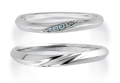 下:プラチナの輝きが際立つようセンターに彫りを加えることでペア感を持たせました。
